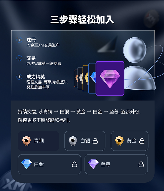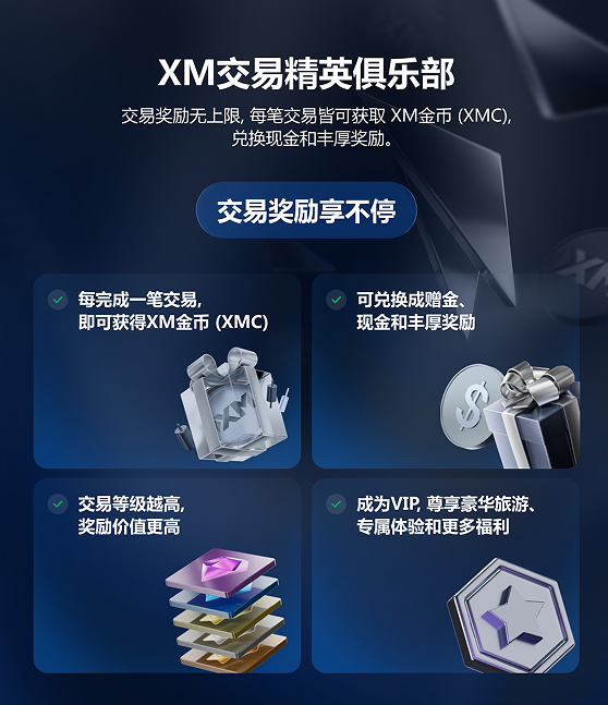 开设XM交易账户,即可轻松加入XM交易精英俱乐部 —— 为交易员打造的专属奖励。