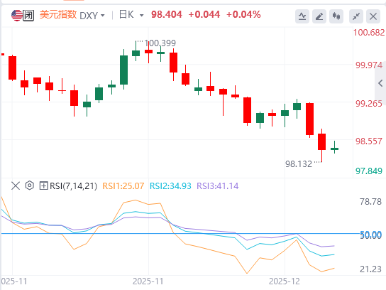 在11月短暂突破100.00关口后,美元指数(DXY)已进入修正阶段,目前仍在努力恢复其市场地位。